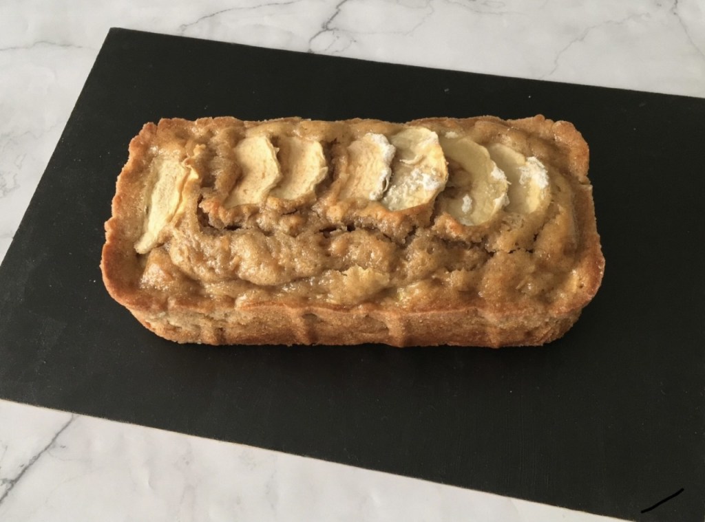Panque de vainilla con trozos de manzana y un toque de canela decorado con manzana